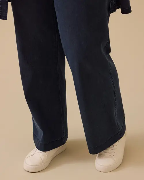 Büyük Beden Bol Paça Jean Pantolon, rahat kesimiyle konforu ve modern görünümü bir arada sunar.
