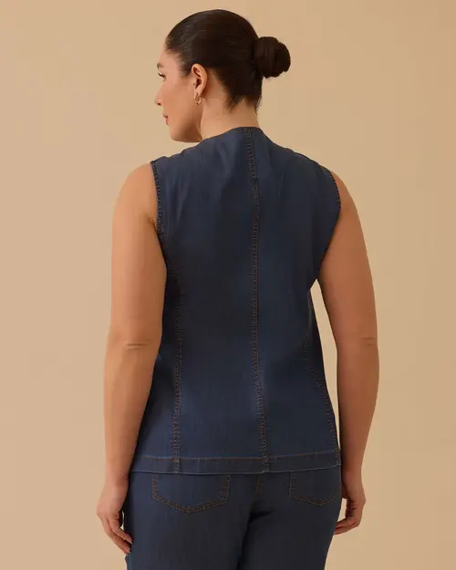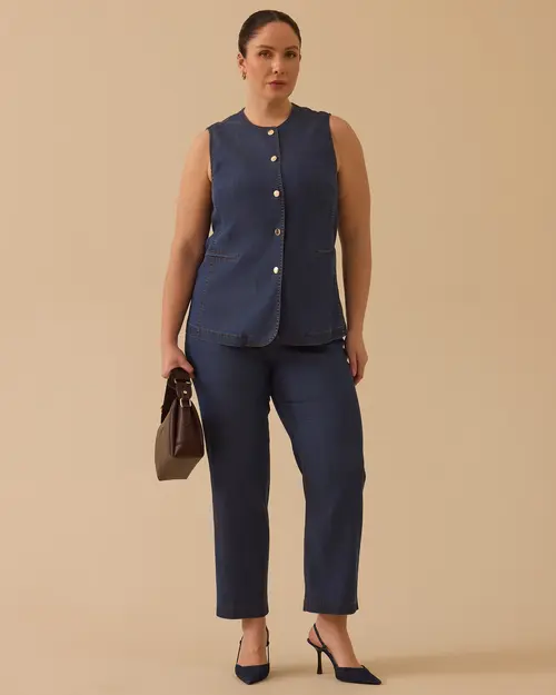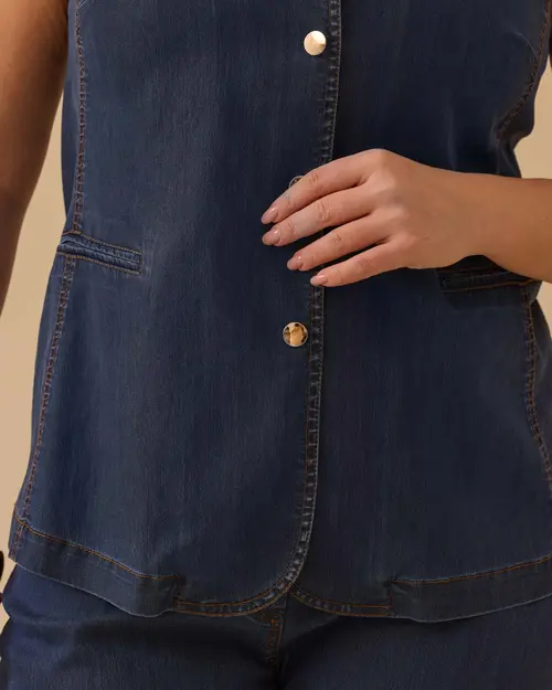 büyük beden düğmeli jean yelek