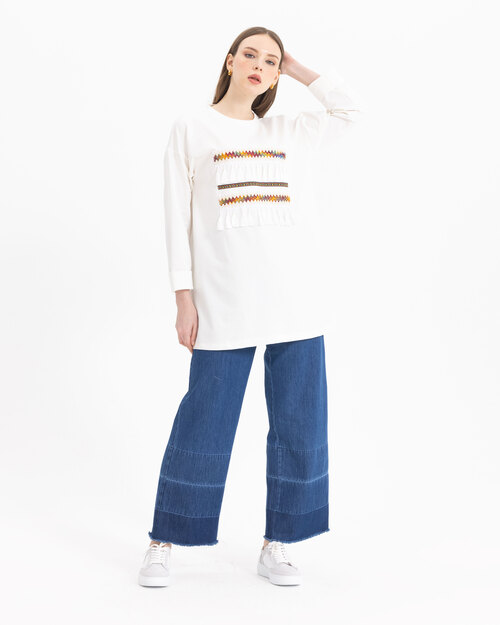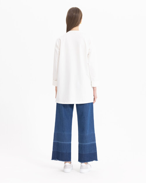 Rahat kesimi ile dikkat çeken jean pantolon, bol paçaları ile modern bir görünüm sunuyor. Pantolonu, Scl tişört'ler ile kombinleyerek rahat bir görünüm elde edebilirsiniz.