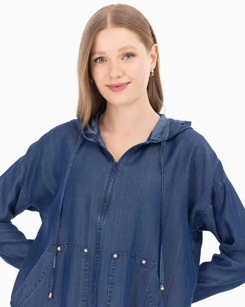 Kapüşonlu ve uzun kollu tasarımıyla öne çıkan Kapüşon Yaka Uzun Kollu Jean Tunik, rahat ve şık bir görünüm için ideal bir seçenek sunuyor. Jean kumaşıyla hem spor hem de şık tarzlara uyum sağlayan tuniği jean pantolonlarınızla birlikte kullanarak, günlük kullanım için rahat bir stil oluşturabilirsiniz.
