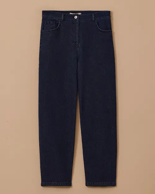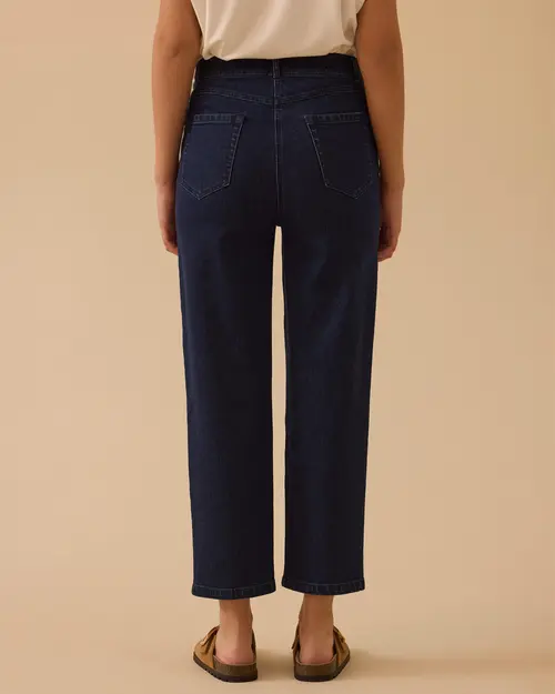 Yüksek Bel Bilek Boy Jean Pantolon, vücuda oturan yüksek bel kesimi ve modern bilek boy tasarımıyla şık ve rahat bir görünüm sunar.