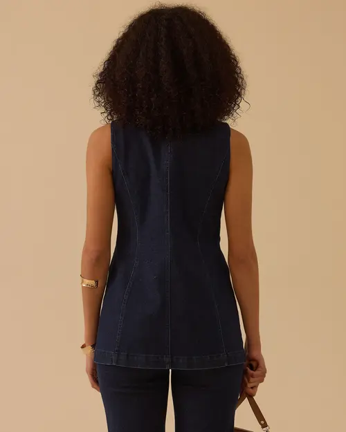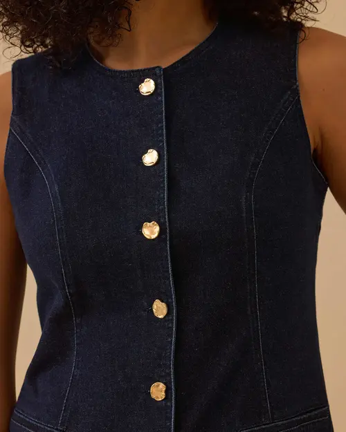 yuvarlak yaka düğmeli jean yelek