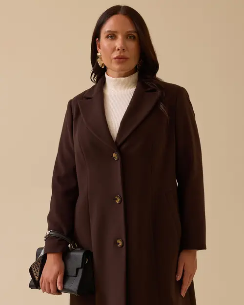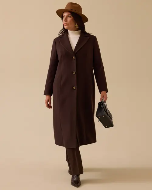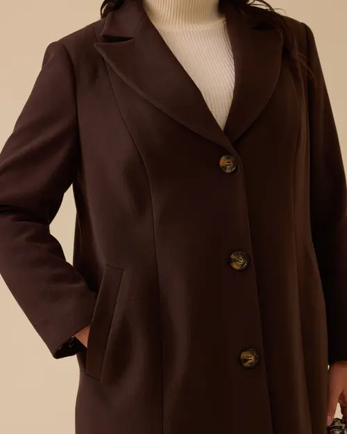 Büyük Beden Astar Desenli Cepli Kaşe Kaban, şık iç astarı ve kullanışlı cepleriyle konfor sunar.
