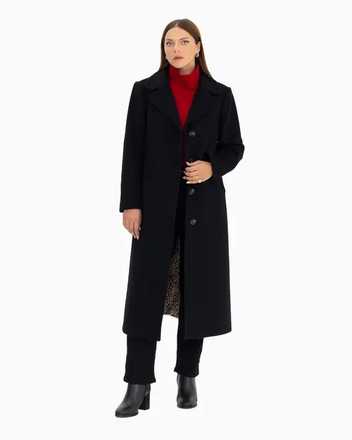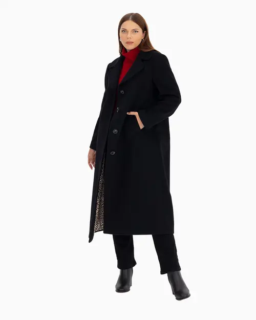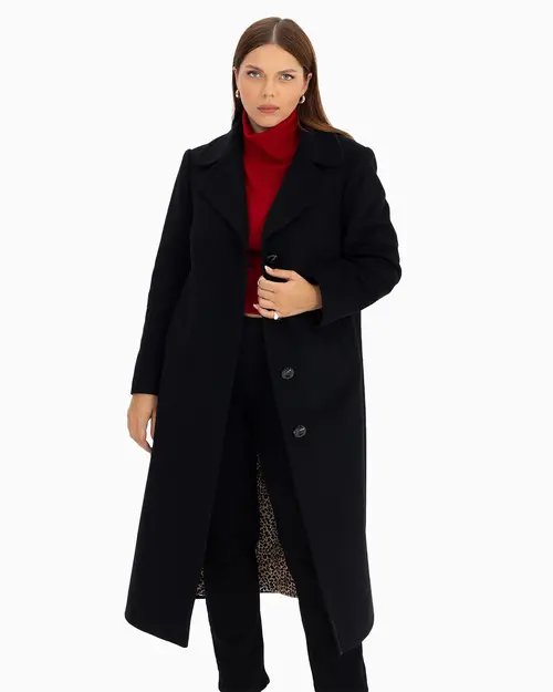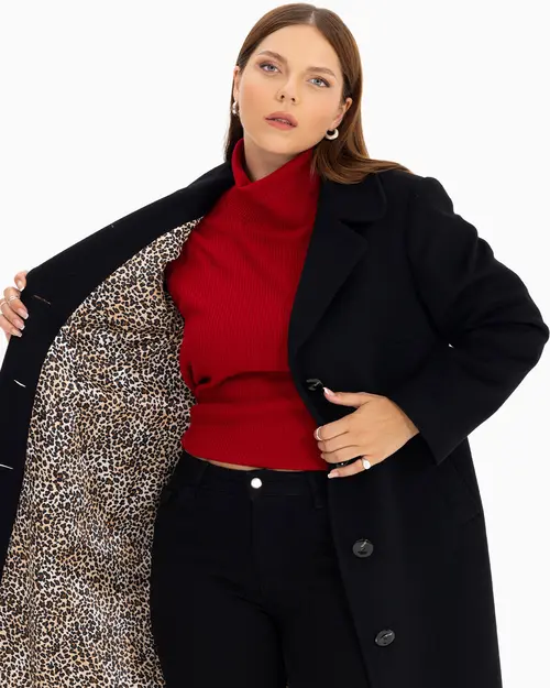 Büyük Beden Astarı Desenli Midi Boy Kaban