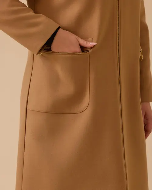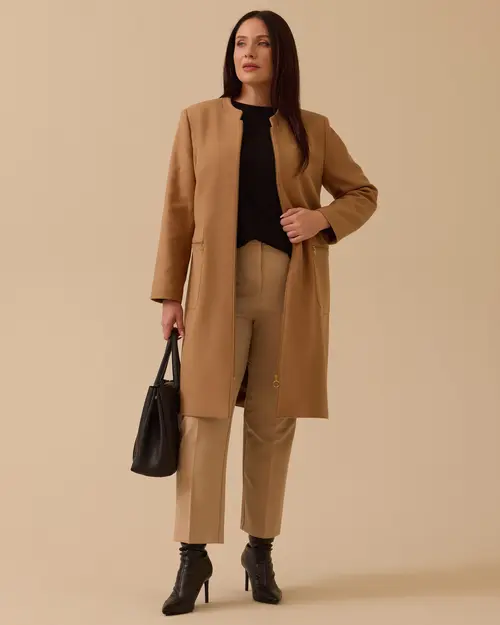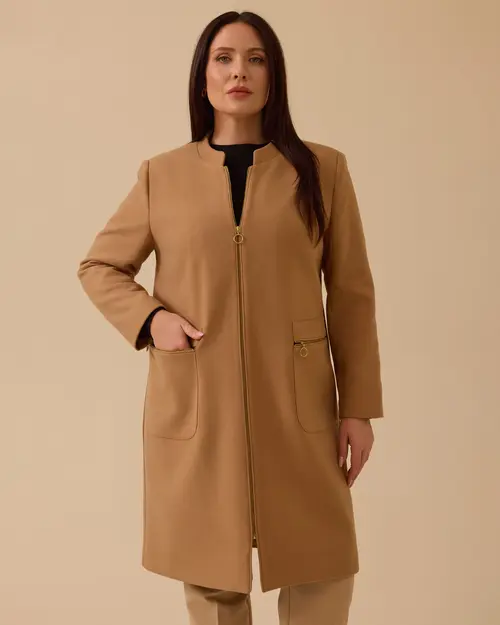 Büyük Beden Fermuarlı Kaşe Kaban, şık tasarım, sıcak tutar, günlük ve özel kullanıma uygun.