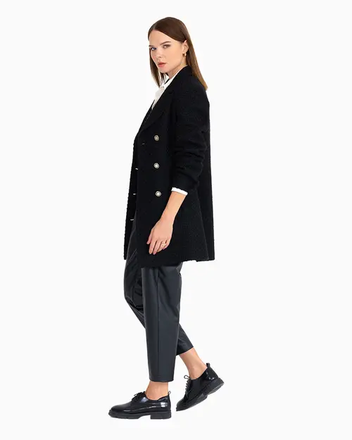 Kruvaze yakasıyla zamansız şıklığa hitap eden ceket, düğme detaylarıyla göze çarpıyor. Klasik bir çizgide yer alan ceketi deri pantolonlarınız ve rugan ayakkabılarınız ile kombinleyerek şıklığınızı tamamlayabilirsiniz.