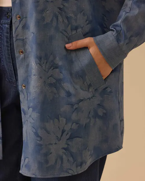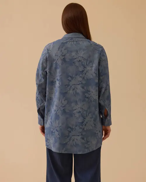 Büyük beden çiçek desenli gömlek, rahat kesimiyle konfor sunar, canlı desenleriyle görünümü canlandırır.