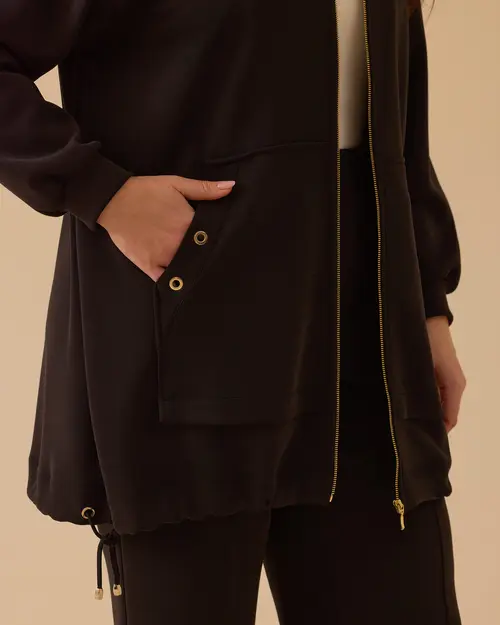 Büyük Beden Fermuarlı Bel Ayarlamalı Kap, ayarlanabilir beliyle rahat ve şık bir görünüm sunar.