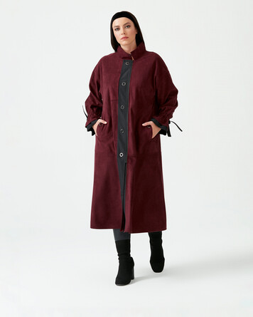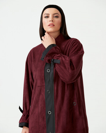 Büyük Beden Kuş Gözü Detaylı Pardesü