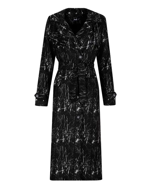 Deseni ile dikkat çeken kaban, midi boyu ve kemeri ile şıklık kazanıyor. Kabanı, klasik kombinleriniz üzerinde kullanarak şıklığınızı katlayabilirsiniz.