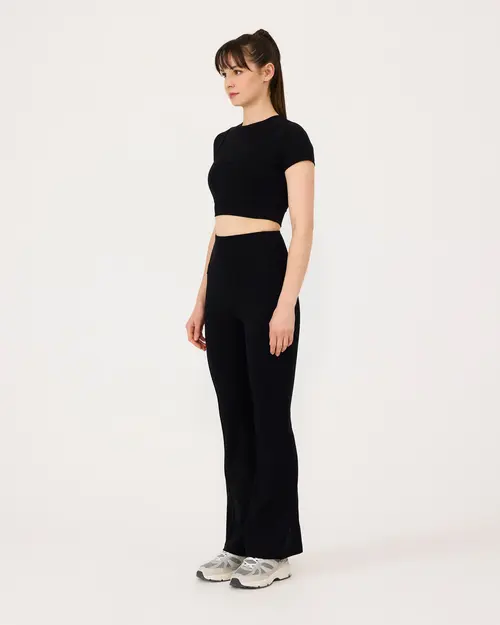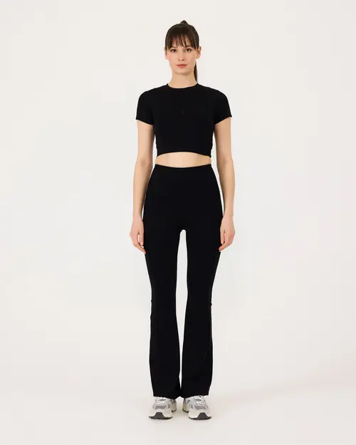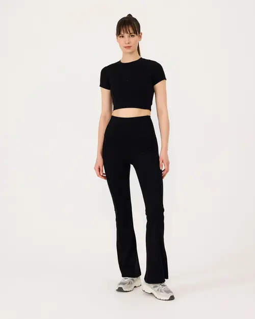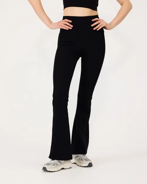 "Yüksek Bel Flare Pantolon", konfor ve tarzı bir araya getirir. Yüksek bel tasarımı, bel bölgesine destek sağlarken, paça kısmındaki "flare" kesimi pantolonun alt kısmında hoş bir görünüm oluşturur. Esnek ve dikişsiz yapısı, vücuda tam olarak oturur ve hareket özgürlüğü sağlar. Bu pantolon, yoga, pilates, dans ve günlük egzersizler gibi çeşitli aktivitelerde rahatlıkla tercih edilebilir. Esnek yapısı, vücut hareketlerini kısıtlamadan rahat bir antrenman deneyimi sunar. Ayrıca, günlük hayatta da kullanılabilir ve farklı kombinlerle uyum sağlar. Spor salonunda, açık havada veya evde egzersiz yaparken rahatlıkla tercih edilebilir.