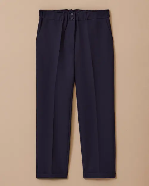 Büyük Beden Beli Büzgülü Duble Paça Pantolon, ayarlanabilir beli ve şık paça detayıyla konforlu bir stil sunar.