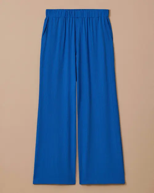 Büyük Beden Dokulu Geniş Paça Pantolon, hafif dokusu ve esnek yapısıyla gün boyu konfor sağlar.