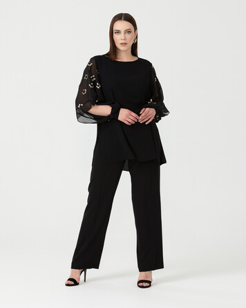 Bir gardırop klasiği haline gelen siyah kumaş pantolon, kalıbı ile kusursuz pantolon kategorisine giriyor. Pantolonunuzu şifon bluzler ile kombinleyebilir, farklı aksesuarlarla kombininizi güçlendirebilirsiniz.