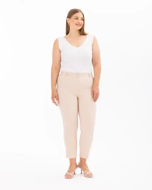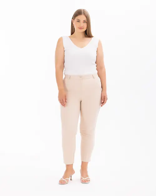 Büyük Beden Normal Bel Klasik Pantolon, zamansız şıklığı ve rahatlığı bir araya getiren bir seçenek oluyor. Dikkatle tasarlanmış kesimiyle gün boyu konfor sağlıyor. Klasik tarzıyla her duruma uyum sağlayan bu pantolon, gardırobunuzun vazgeçilmez parçalarından biri olacaktır.