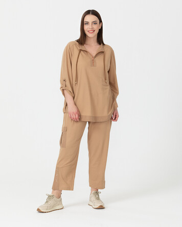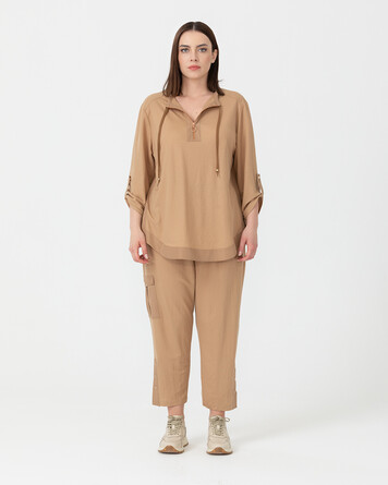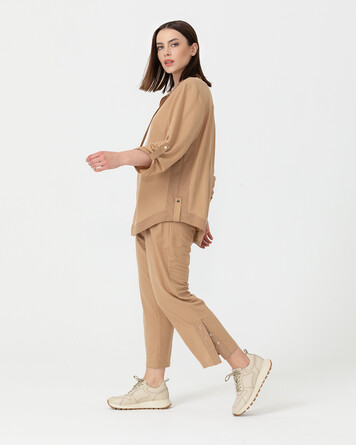 Dokusu ve kesimi ile konfor sağlayan pantolon, basic stillere farklı bir dokunuş katıyor. Pantolonu, aynı kumaştan üretilmiş Galaxi bluzu ile kombinleyebilirsiniz.