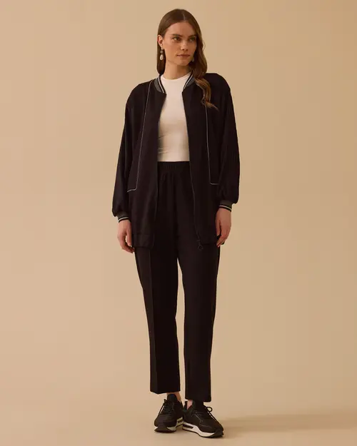 Elastik Bel Bilek Boy Pantolon, esnek yapısı ve rahat kesimiyle gün boyu konforlu ve modern bir stil sunar.