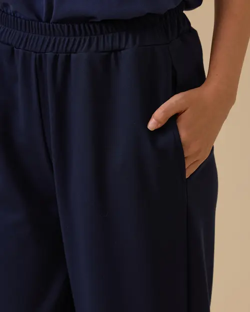 Elastik Bel Cepli Pantolon, konforlu elastik beli ve pratik cepleriyle günlük şıklığı sade bir tasarımla birleştirir.