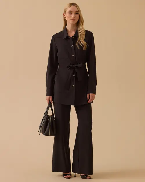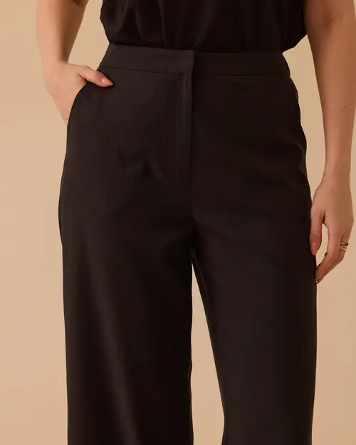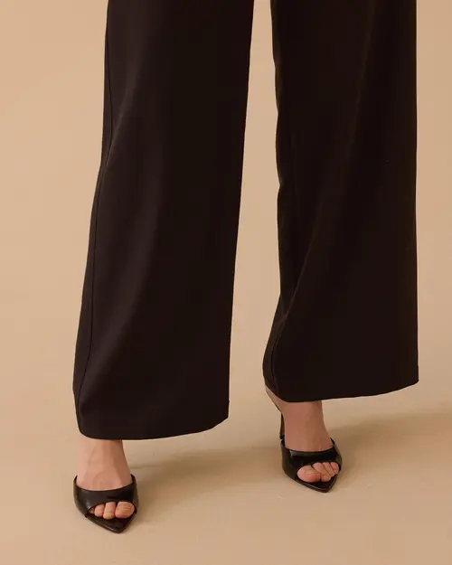 Normal Bel Geniş Paça Pantolon, akıcı duruşu ve rahat kesimiyle günlük ve ofis stiline modern şıklık katar.