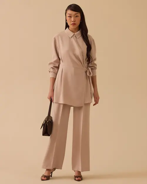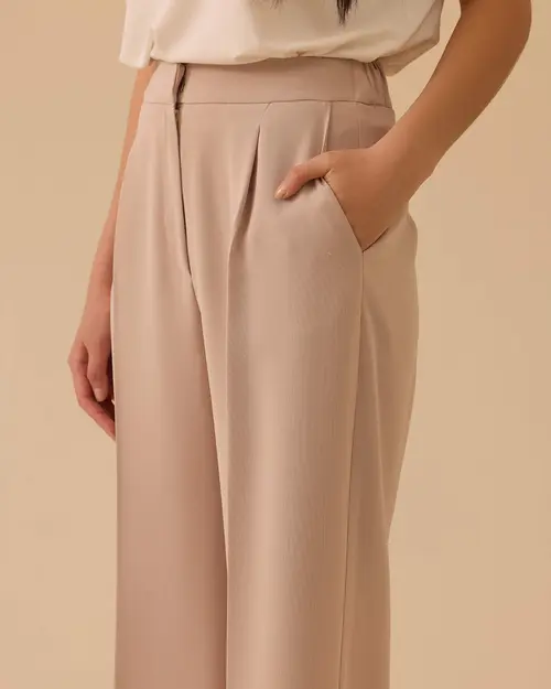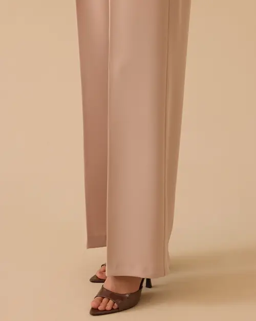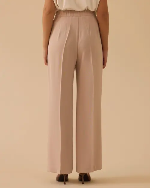 Pileli Geniş Paça Krep Pantolon,ofisten davete farklı kombinlere uyum sağlar.