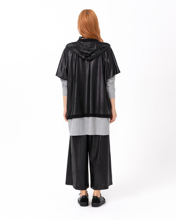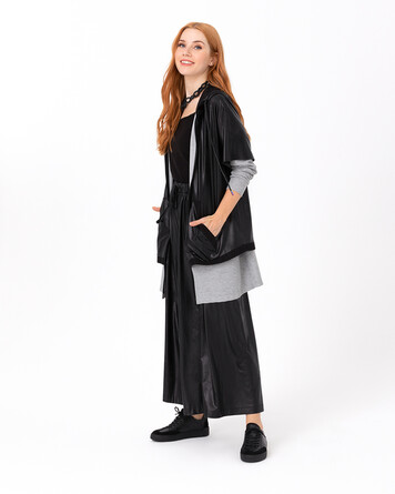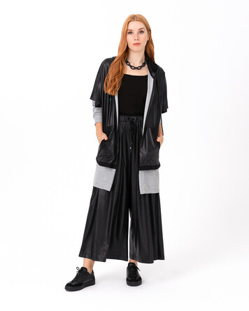 Deri görünümü ile şıklık kazanan pantolonetek, elastik beli ile konfor alanını yükseltiyor. Pantoloneteği, aynı dokuya sahip ceketi ile kombinleyerek, rahat ve şık bir görünüm elde edebilirsiniz.