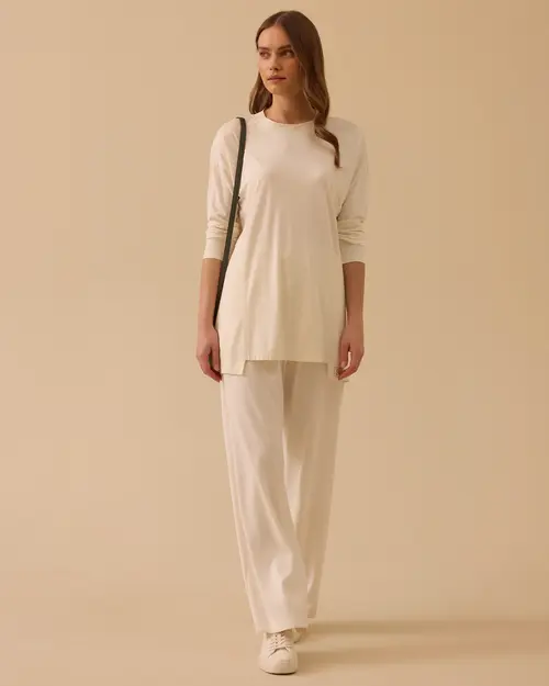 Wide Leg Modal Pantolon, akışkan formu sayesinde hareket özgürlüğü sağlar.
