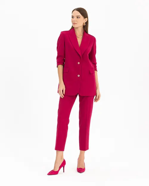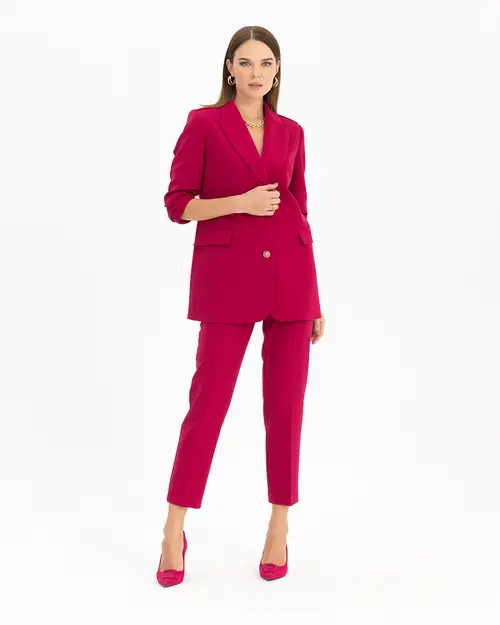 İddialı rengiyle klasik pantolon stiline yeni bir bakış açısı getiren fit pantolon, zarif görünümünden vazgeçemeyenler için ideal bir duruş sergiliyor. Stilinize eşlik edecek fit kesim pantolonu Seçil ceketi ile kombinleyerek tarzınıza şıklık katabilirsiniz.