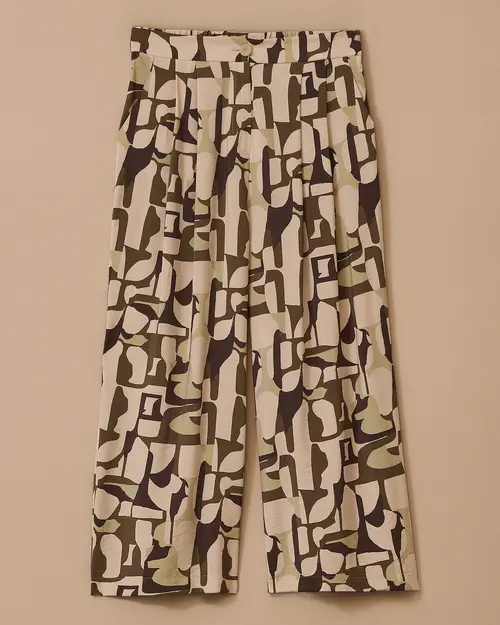 Desenli Geniş Paça Cepli Pantolon, konforlu ve şık tasarımıyla öne çıkıyor, uyumlu desenli gömlek ile mükemmel bir kombin oluşturuyor.