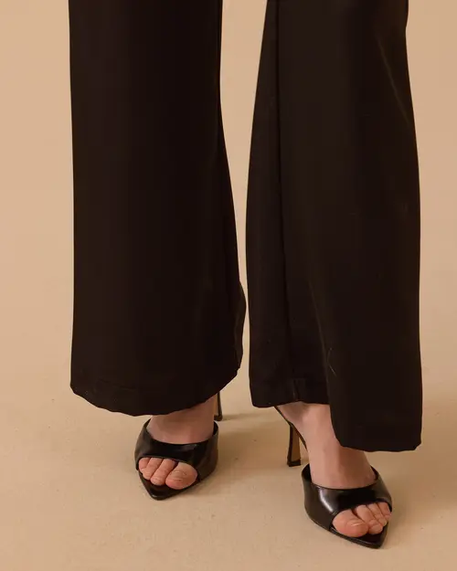 düz kesim bol paça saten pantolon