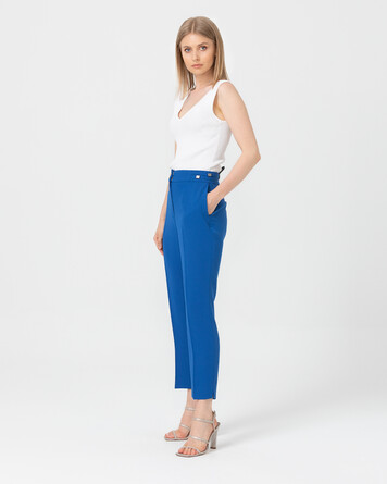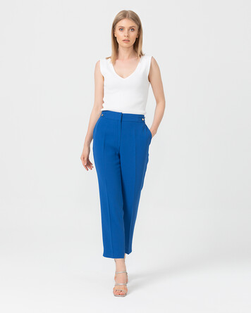 Klasik formdaki pantolon, kumaş seçimi ve kusursuz kalıbıyla zamansız duruşu güçlendiriyor. Fit ve modern bir görünüme çabasız bir şekilde ulaşmayı sağlayan pantolonunuzu, aynı tonlarda ceketlerle kombinleyebilir, stilettolar ile tamamlayabilirsiniz.