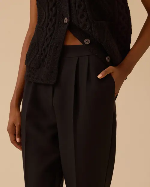 Moon Çift Pileli Bilek Boy Pantolon, şık tasarımı ve rahat kesimiyle günlük stilinize uyum sağlar.