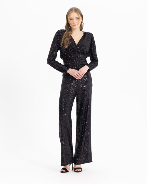 Payet formu ile ışıltılı bir stil yansıtan pantolon, kesimi ile modern stili garantiliyor. Pantolonu, payet bluz u ile tamamlayabilir, şıklığınızı vurgulayabilirsiniz.