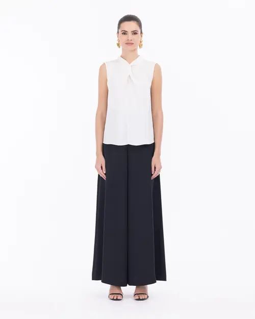 Saten Görünümlü Geniş Paçalı Pantolon, şık ve modern bir tarz oluşturmak için tasarlandı. Pantolon, saten görünümlü kumaşı sayesinde zarif bir parlaklık sunarken, geniş paçalı tasarımı ile hareket özgürlüğü sağlıyor. Saten görünümlü pantolonu topuklu ayakkabılarla kombinleyerek özel etkinliklerde ya da daha rahat bir görünüm için spor ayakkabılarla günlük hayatta kullanabilirsiniz.
