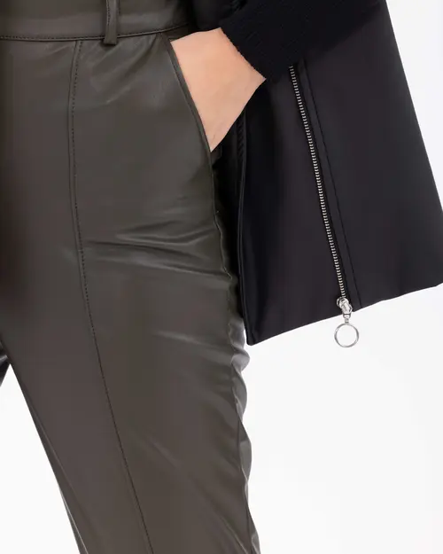 Suni deri bilek boy pantolon, şıklığı ve konforu bir araya getiren bir parçadır. Suni derinin verdiği asil ve modern görünüm, her kombini öne çıkarır. Bilek boyu kesimi sayesinde ayakkabılarınızı sergileyebilir ve farklı stil seçenekleri oluşturabilirsiniz. Esnek yapısıyla gün boyu rahatlık sunar. Hem günlük hem de özel günlerde tercih edebileceğiniz bu pantolon, gardırobunuzda çok yönlü bir seçenek olarak olarak değerlendirebilirsiniz.