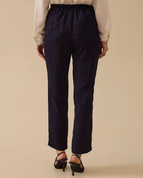 Yüksek Bel Dar Paça Klasik Pantolon, şık ve zarif tasarımıyla hem ofis hem de günlük kombinler için ideal, rahat ve modern bir görünüm sunar.