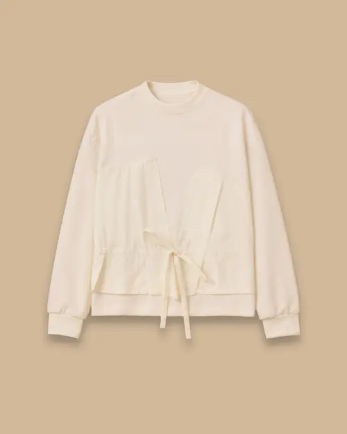 Çift Kumaşlı Bağcıklı Sweatshirt, modern çift kumaş tasarımı ve bağcık detayıyla konforlu ve stil sahibi bir görünüm sunar.