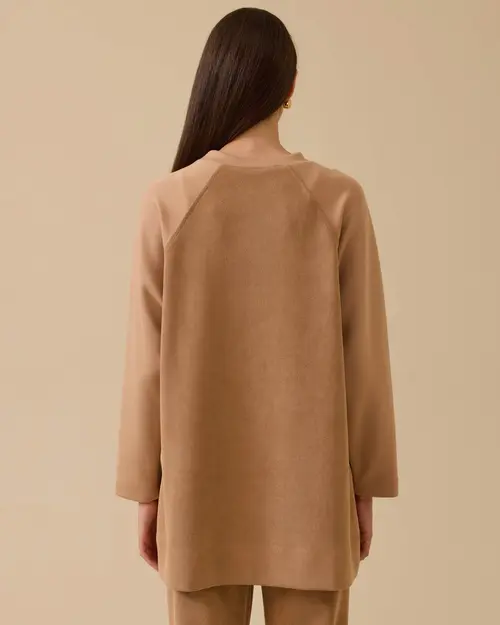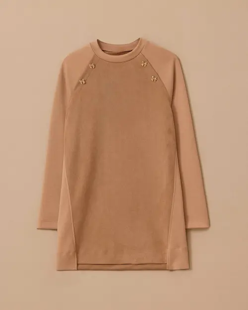 Fiyonk Aksesuar Detaylı Süet Sweatshirt, yumuşak dokusu ve zarif detaylarıyla şıklığı konforla buluşturur.