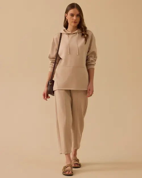 Kapüşonlu Arka Çizgili Sweatshirt