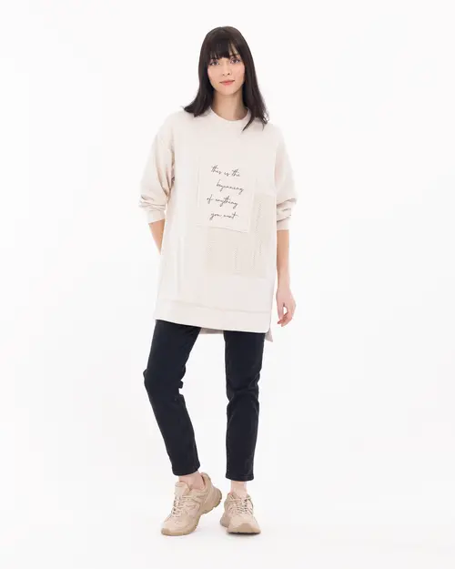 Nakış detaylarına yer verilen sweatshirt kışlık görünümlerin vazgeçilmez parçaları arasında yerini alıyor. Günlük görünümüze adapte edebileceğiniz sweatshirt ü spor ayakkabılarınız ile tamalayabilirsiniz.