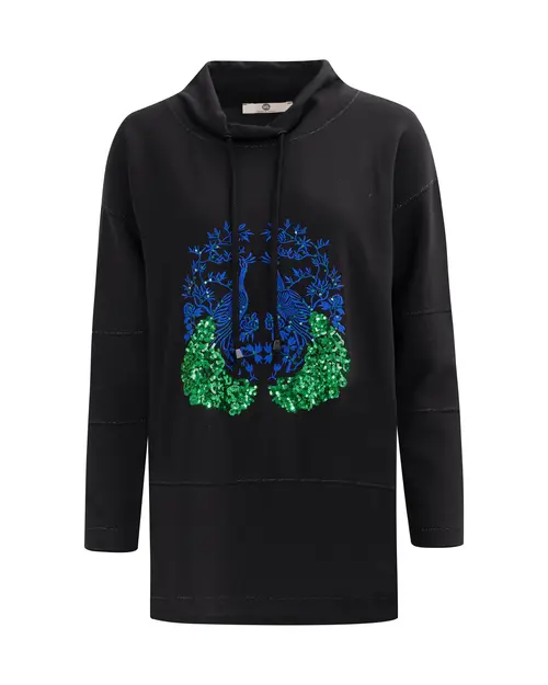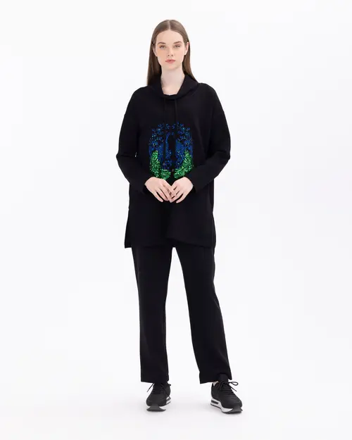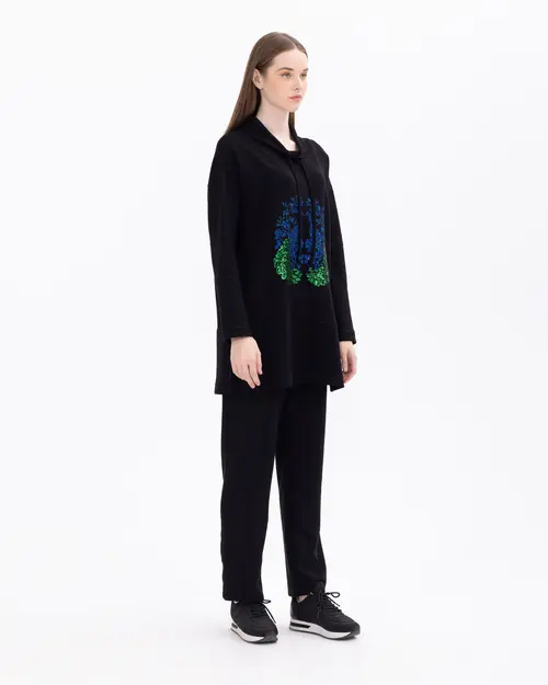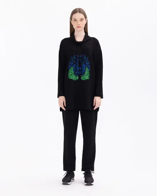 Zarif detaylarla süslenmiş Payet ve Nakış İşlemeli Dik Yakalı Sweatshirt, şıklığı ve rahatlığı mükemmel bir şekilde bir araya getiriyor. Modern kesimi, dikkat çekici payet ve ince nakış işlemeleri ile buluşarak özel bir tarz sunuyor. Her anı özel kılmak için ideal bir seçenek.