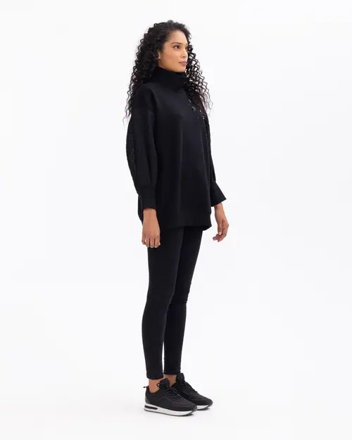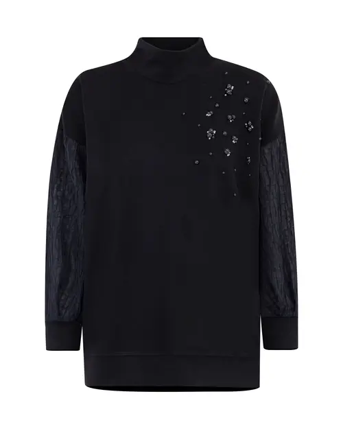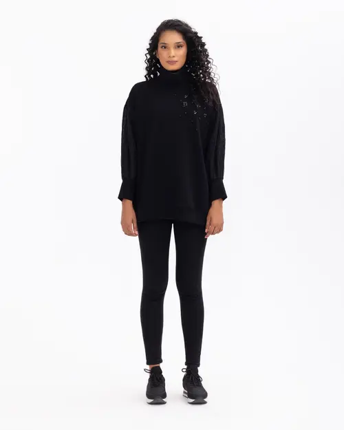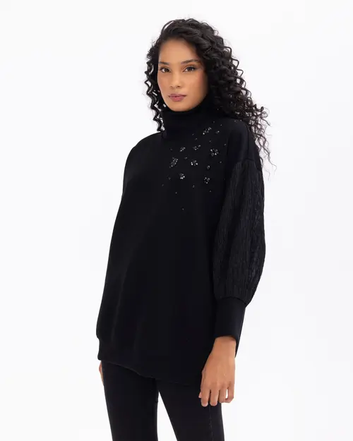 Boncuk detaylı tam boğazlı sweatshirt, zarif ve şık bir spor giyim parçasıdır. Tam boğaz tasarımı, soğuk havalarda sizi sıcak tutar ve şıklığınıza katkı sağlar. Boncuk detayları, sweatshirt e özgün bir dokunuş ekler, dikkat çekici bir ayrıntı sunar. Rahat kesimi ile hareket özgürlüğü sunar ve günlük stilinizi yansıtırken konforu ön planda tutar. Bu sweatshirt, spor ve şıklığı bir araya getiren harika bir seçenektir.