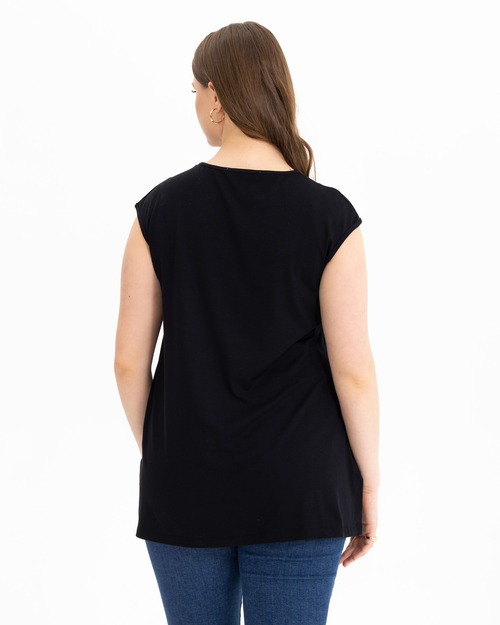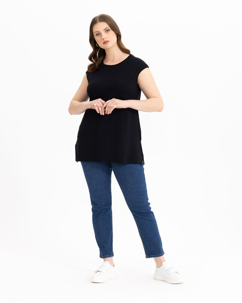 Basic formu ve kumaşı ile konfor sağlayan tişört, sıcak yaz günlerinde kurtarıcı parçanız olmaya hazır. Tişörtü, mom kesin jean pantolonların üzerinde kombinleyebilir ya da ceketlerin içine adapte edebilirsiniz.