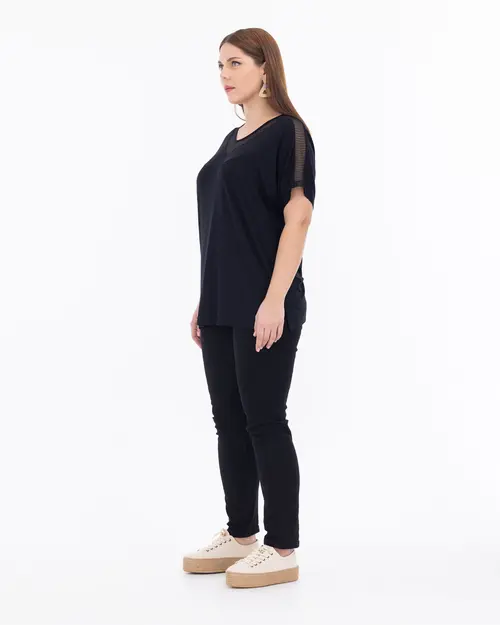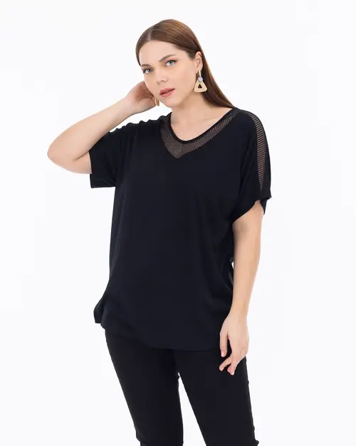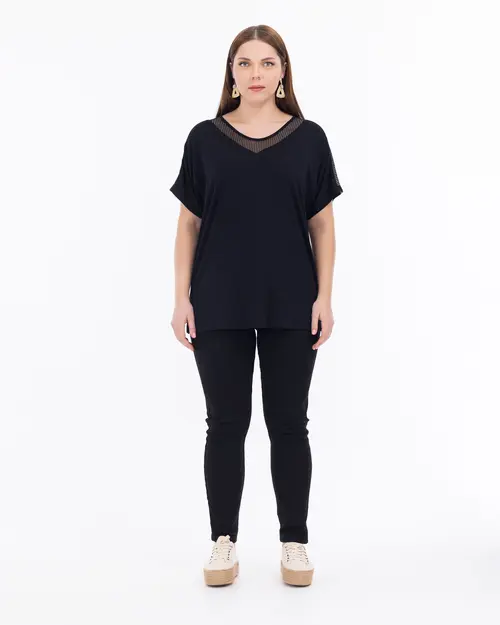 Büyük Beden V Yaka Kısa Kollu Tişört