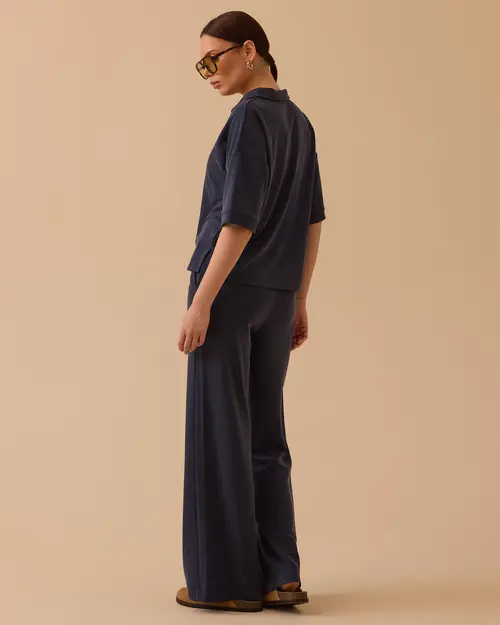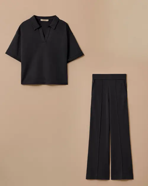 Polo Yaka Modal Takım, yumuşak modal kumaşı ve rahat kesimiyle şık ve konforlu kullanım sunar.