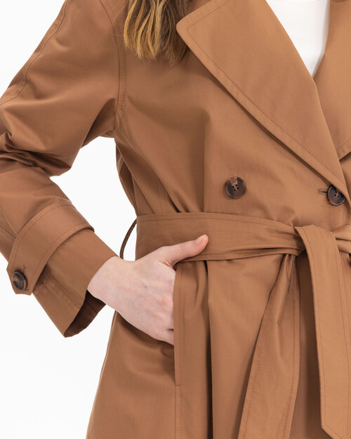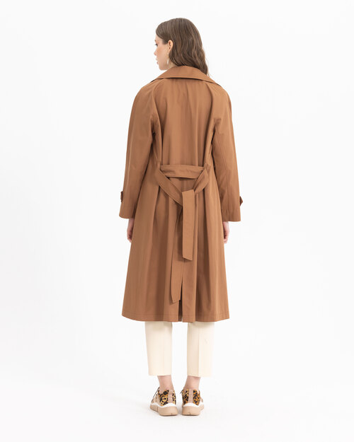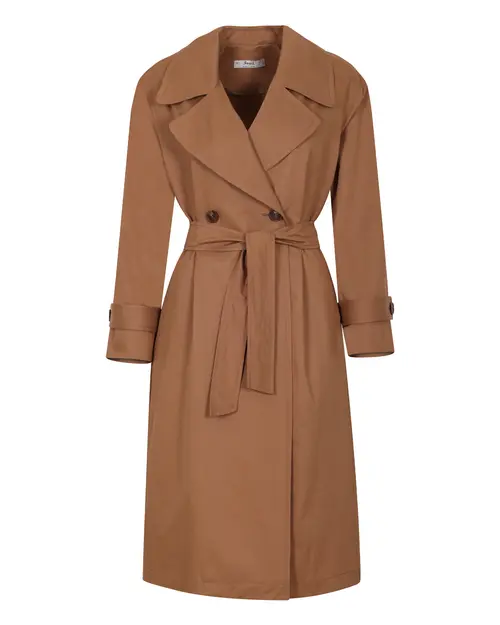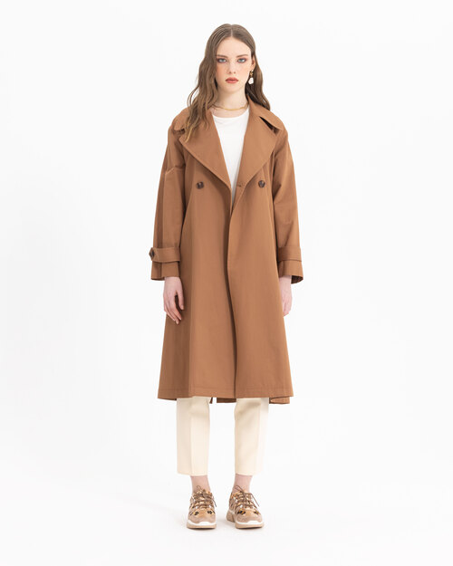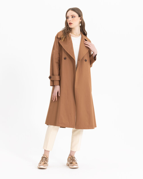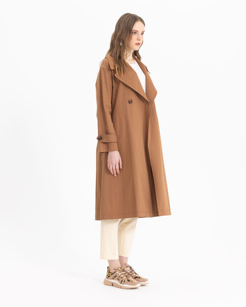 Kruvaze yakası ve kemeri ile dikkat çeken trençkot, astarsız dokusu ile sezonda konfor sunuyor. Trençkotu, açık tonlarda pantolonlar üzerine adapte edebilir, şık bir silüet yansıtabilirsiniz.
