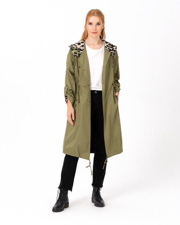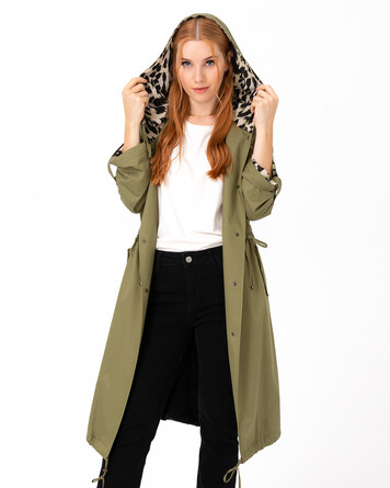 Leopar desenin haki ile uymuyla bütünleşen trençkot, stilinizi bu mükemmel birliktelik ile taçlandırıyor. Ayarlanabilir bel ve kol detayı ile istediğiniz formda kullanabileceğiniz trençkotu jeanlariniz ile tamamlayabilirsiniz.