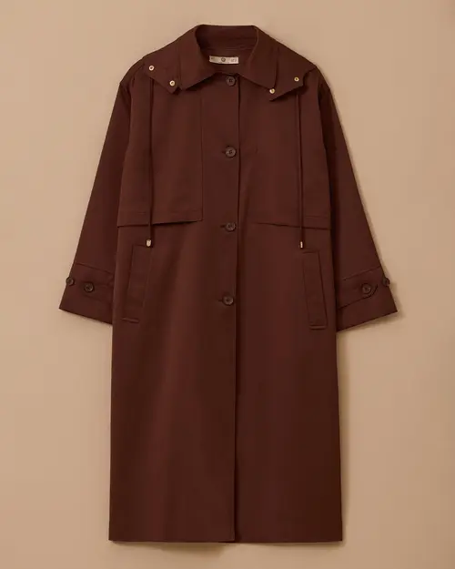 Su İtici Uzun Trençkot, fonksiyonel yapısı ve klasik kesimiyle her mevsim şık bir görünüm sunar.