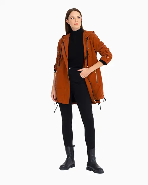 Mevsimin en çok tercih edilen parçalarından olan trençkot, bağcık detaylarıyla spor bir görünüm yakalıyor. Kapüşon yakasıyla da konfor sağlayan trençkotu, spor ve şık kombinlerinize adapte edebilirsiniz.