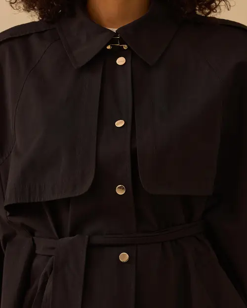 kuşaklı cep detaylı pelerin trençkot