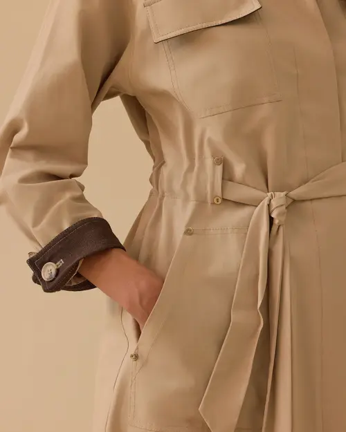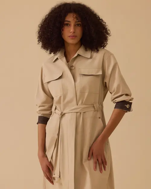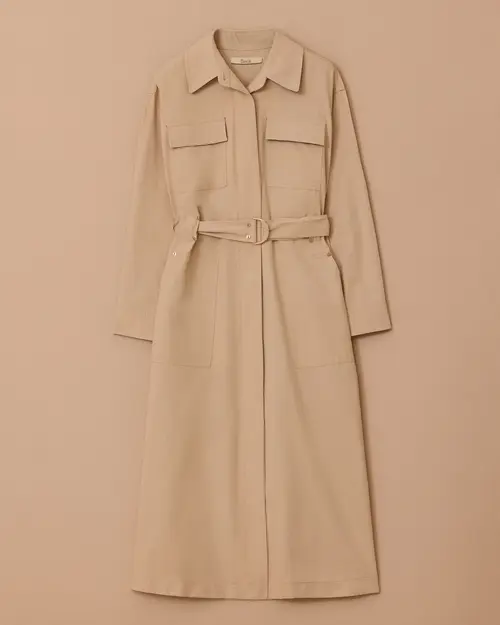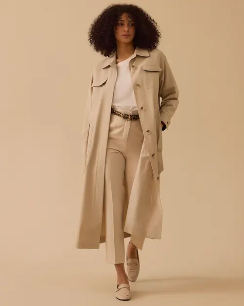 Kuşaklı Cep Detaylı Uzun Trençkot, kuşaklı tasarımı ve cep detaylarıyla şık ve zamansız stil sunar.